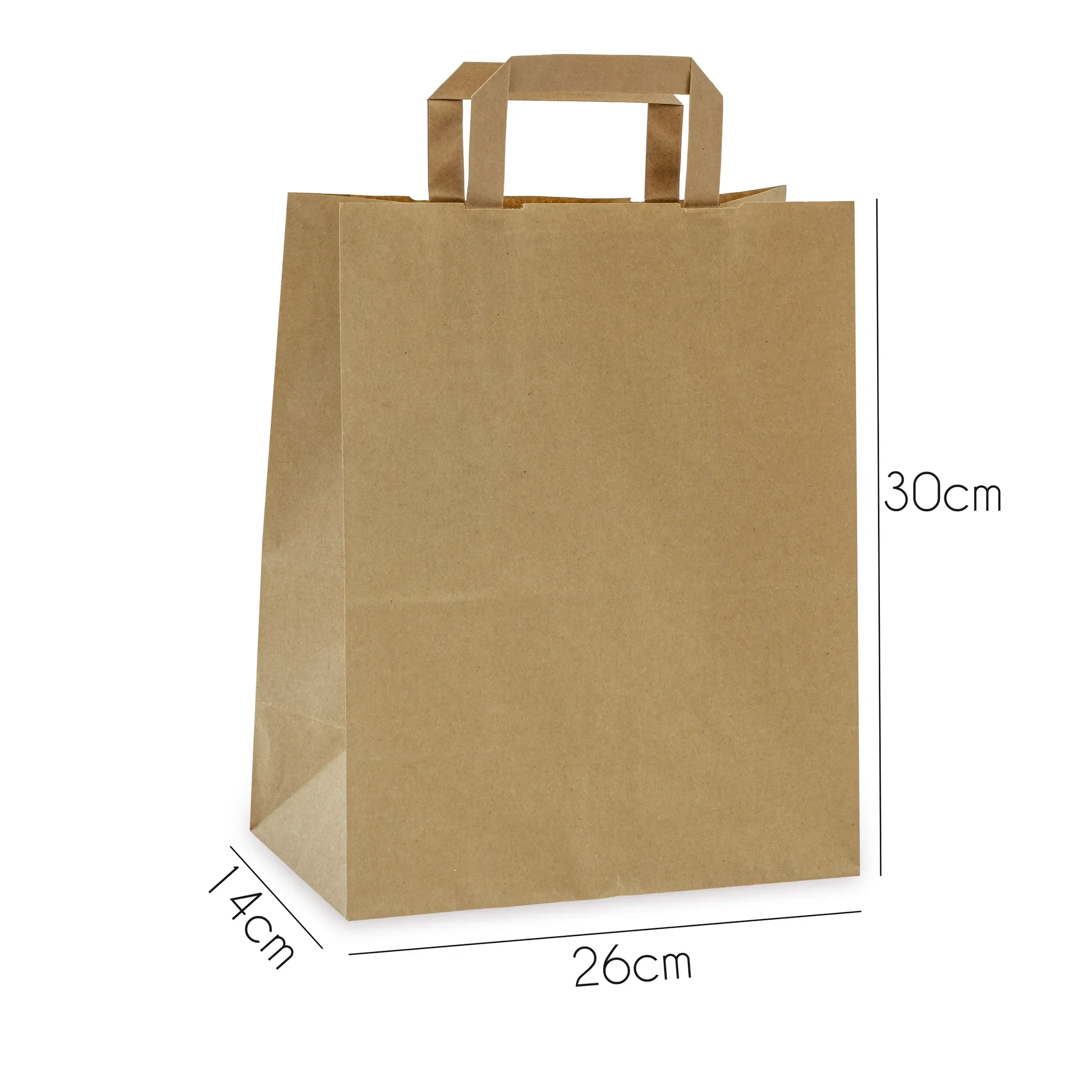 Allbags Papiertüte – 26 × 14 × 30 cm – Braun, flache Papiergriffe