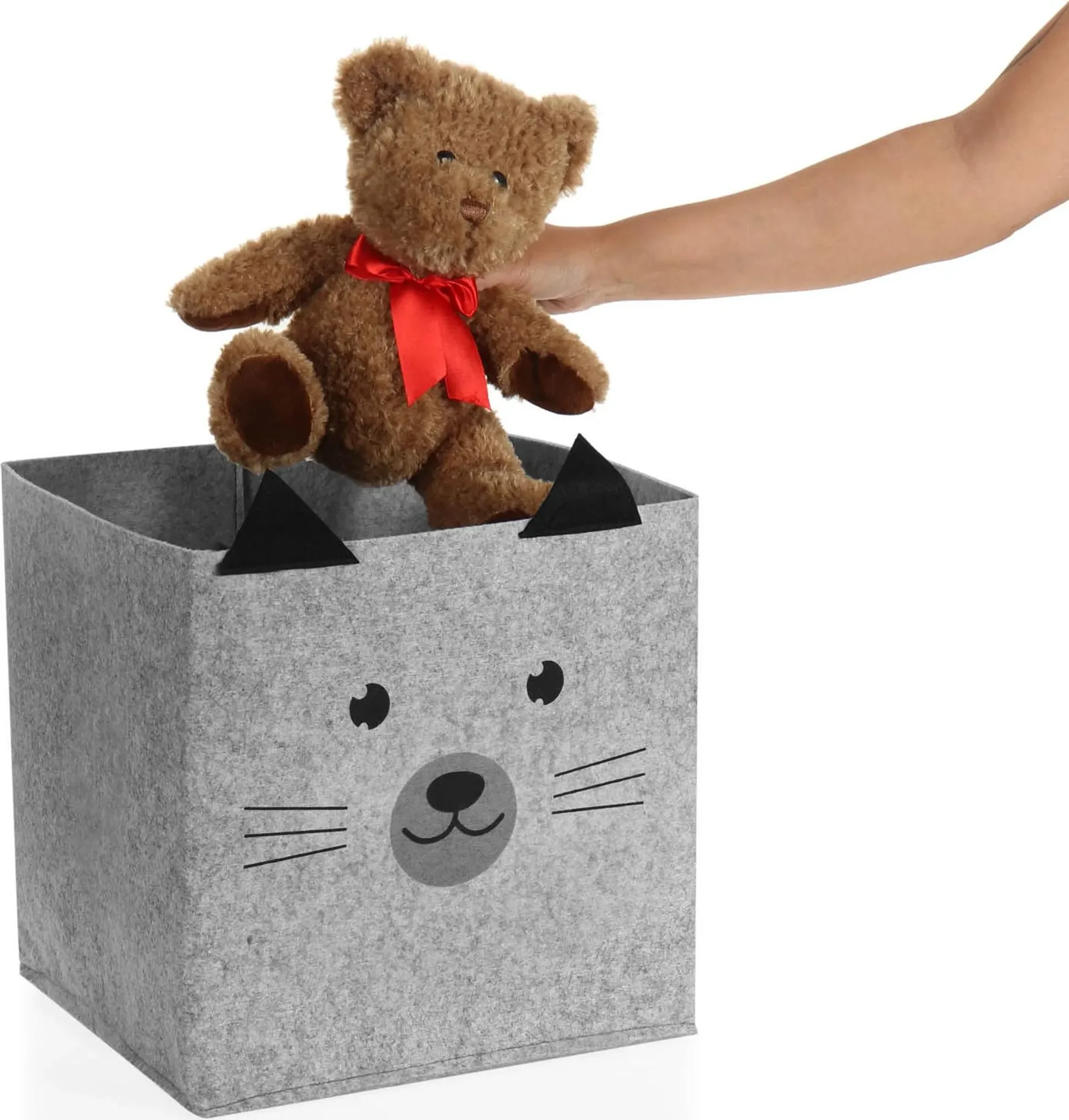 Aufbewahrungskorb für Kinderzimmer – faltbare Box ohne Deckel, Tierdesign, Hellgrau
