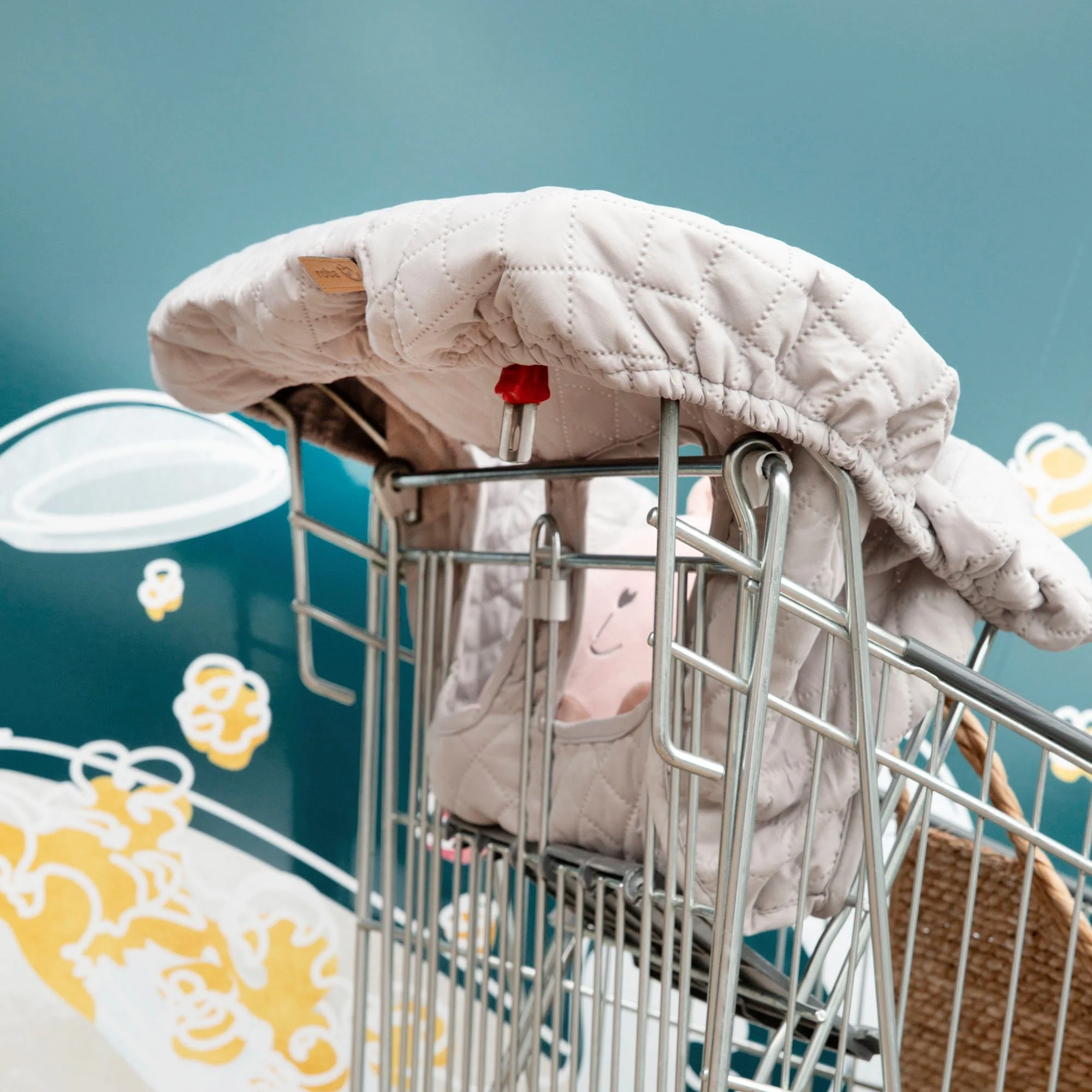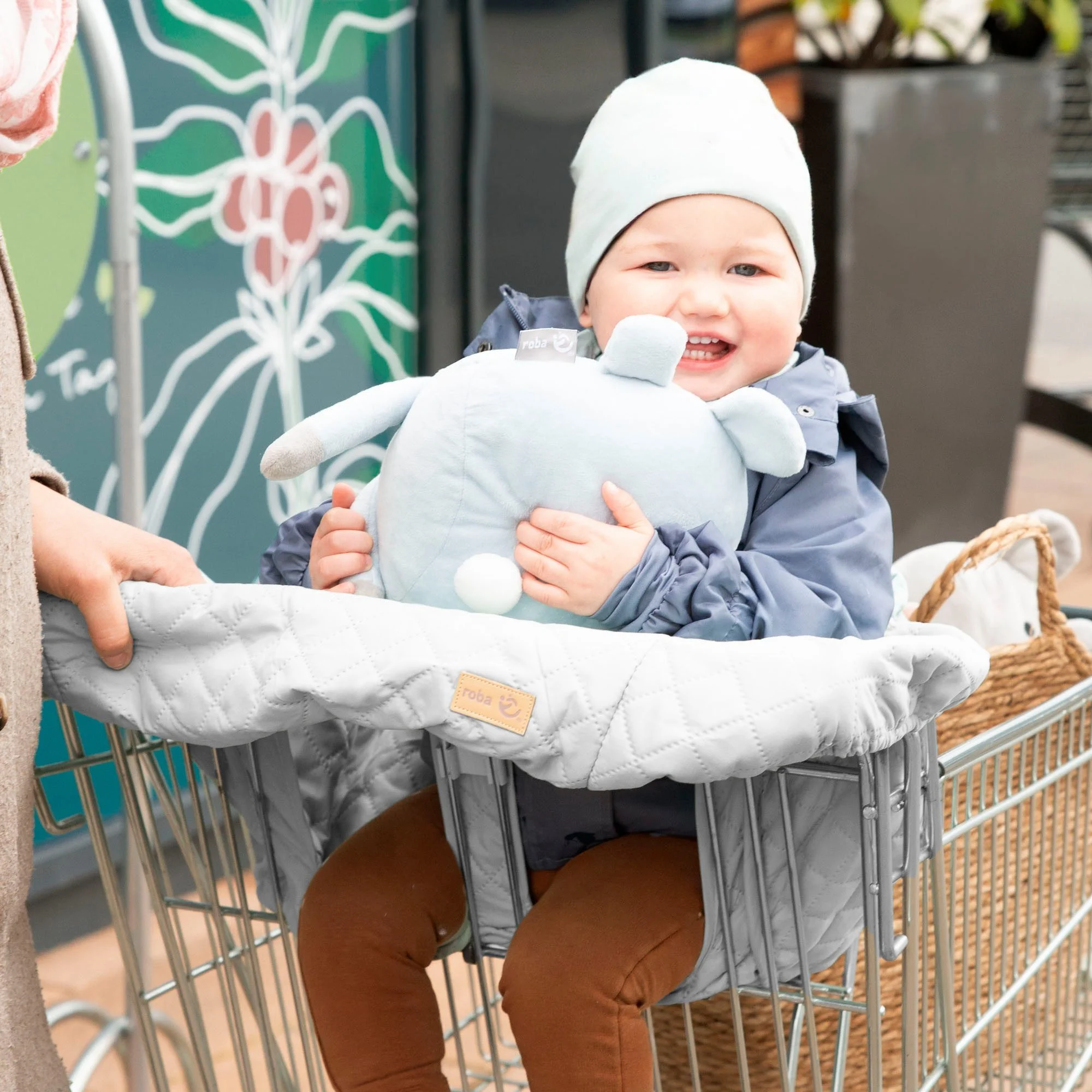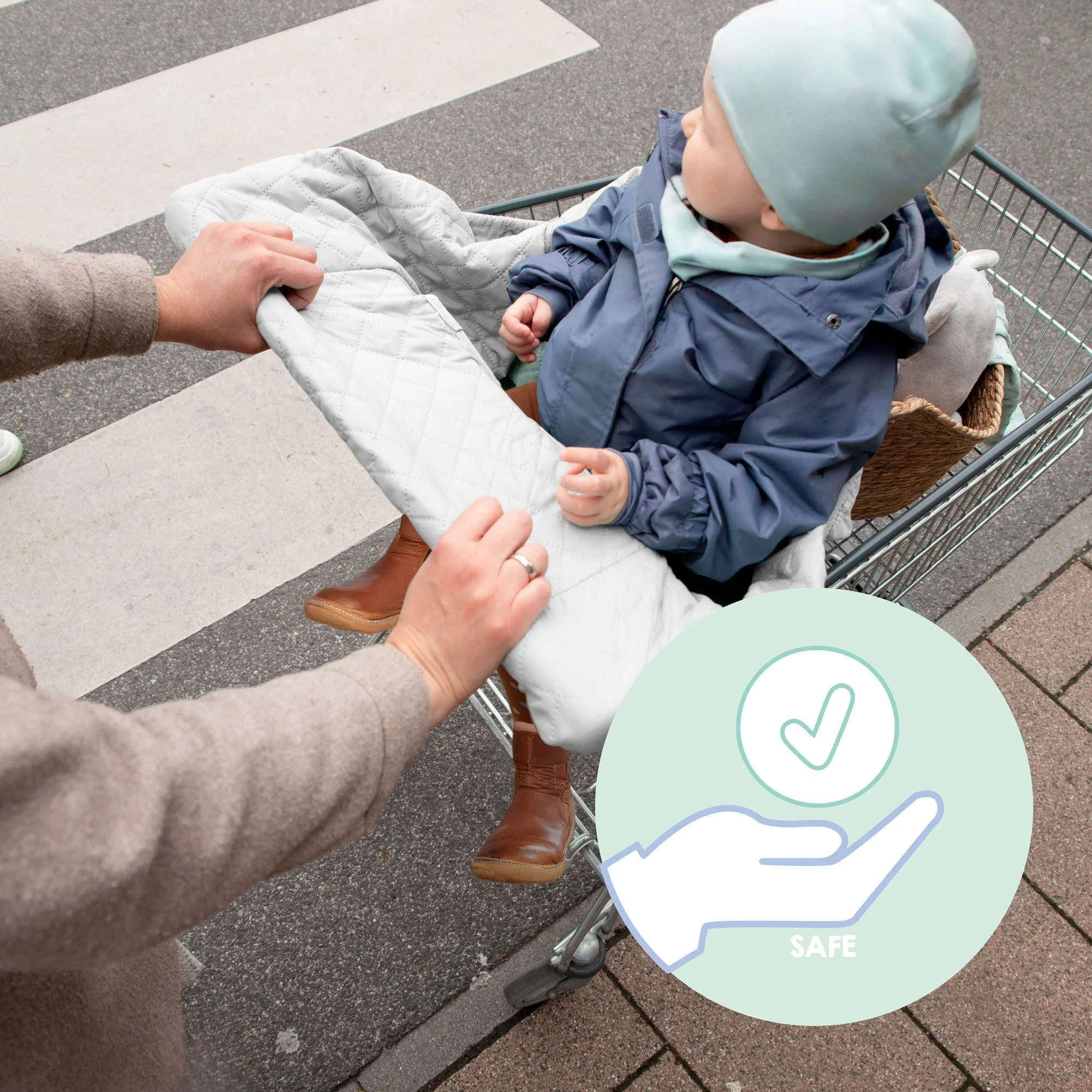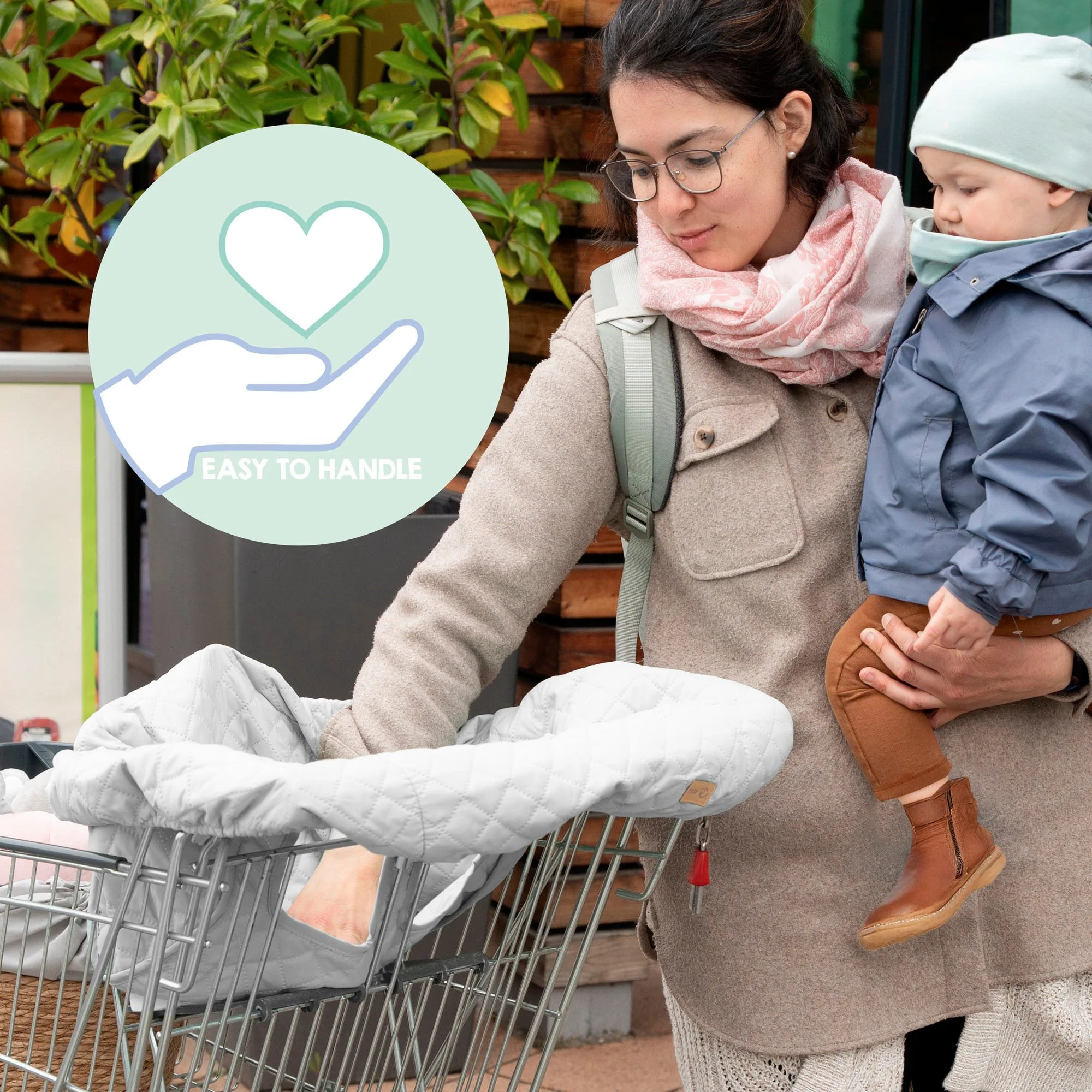 Highlights: Rundum-Hygieneschutz für Griffe und Sitz, gepolsterte Sitzauflage gegen harte Kanten, kompakt im Tragerucksack verstaubar, ideal für Eltern, die häufig mit Baby oder Kleinkind einkaufen gehen.