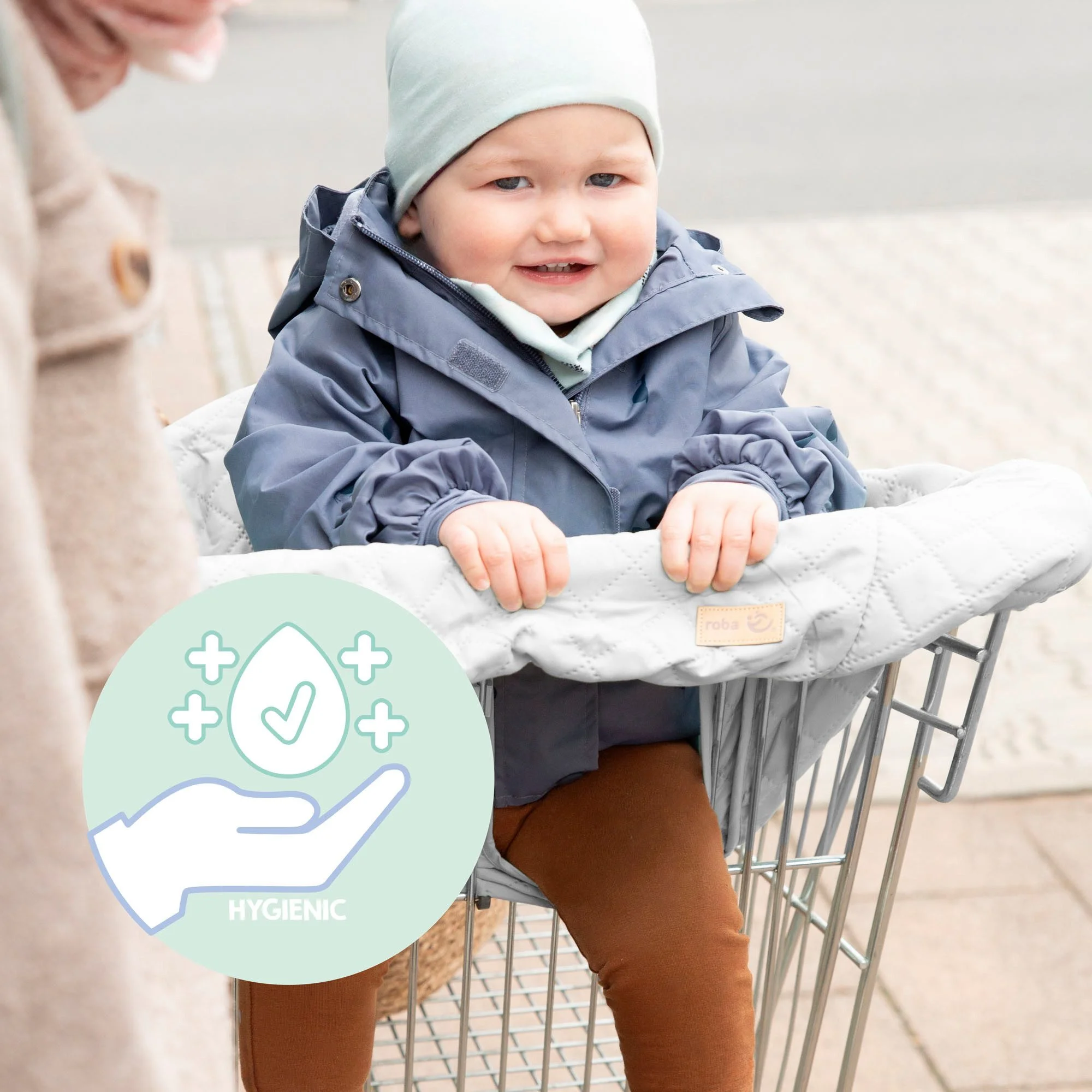 Der roba Einkaufswagenschutz „Style“ bietet einen rundum hygienischen und bequemen Sitzplatz für Babys und Kleinkinder beim Einkaufen. Der Schutzbezug deckt Griffe und Sitzfläche des Einkaufswagens vollständig ab, sodass Ihr Kind nicht direkt mit Stange, Pfandschloss oder Sperrkette in Kontakt kommt. Gleichzeitig sorgt die weiche Polsterung für angenehmen Sitzkomfort und schützt vor harten Kanten.