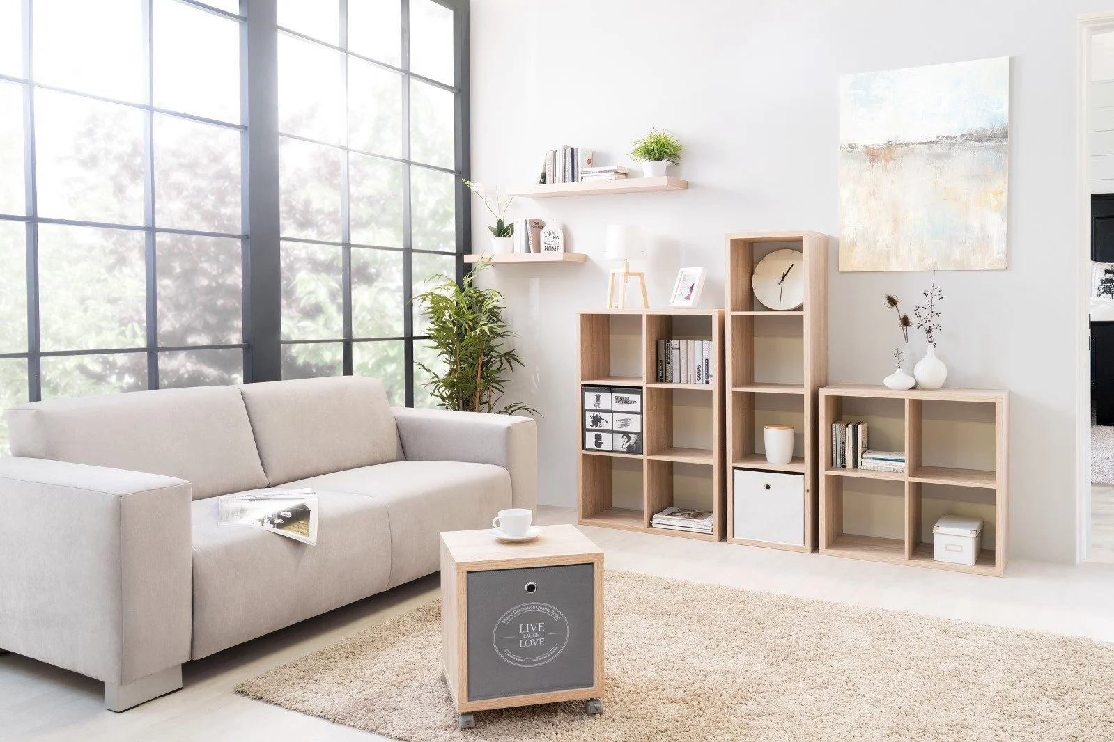 | Besonderheiten | Faltbar, stabil, mit Metallgriff-Öse, passend für Raumteiler & Regalfächer |