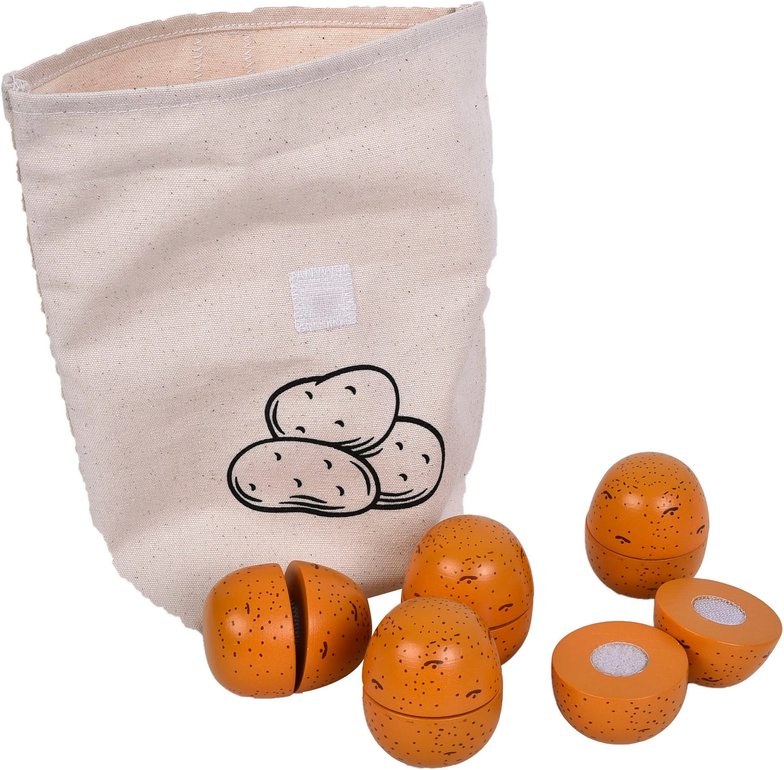 Holzkartoffeln zum Schneiden – Spiellebensmittel im Baumwollsäckchen
