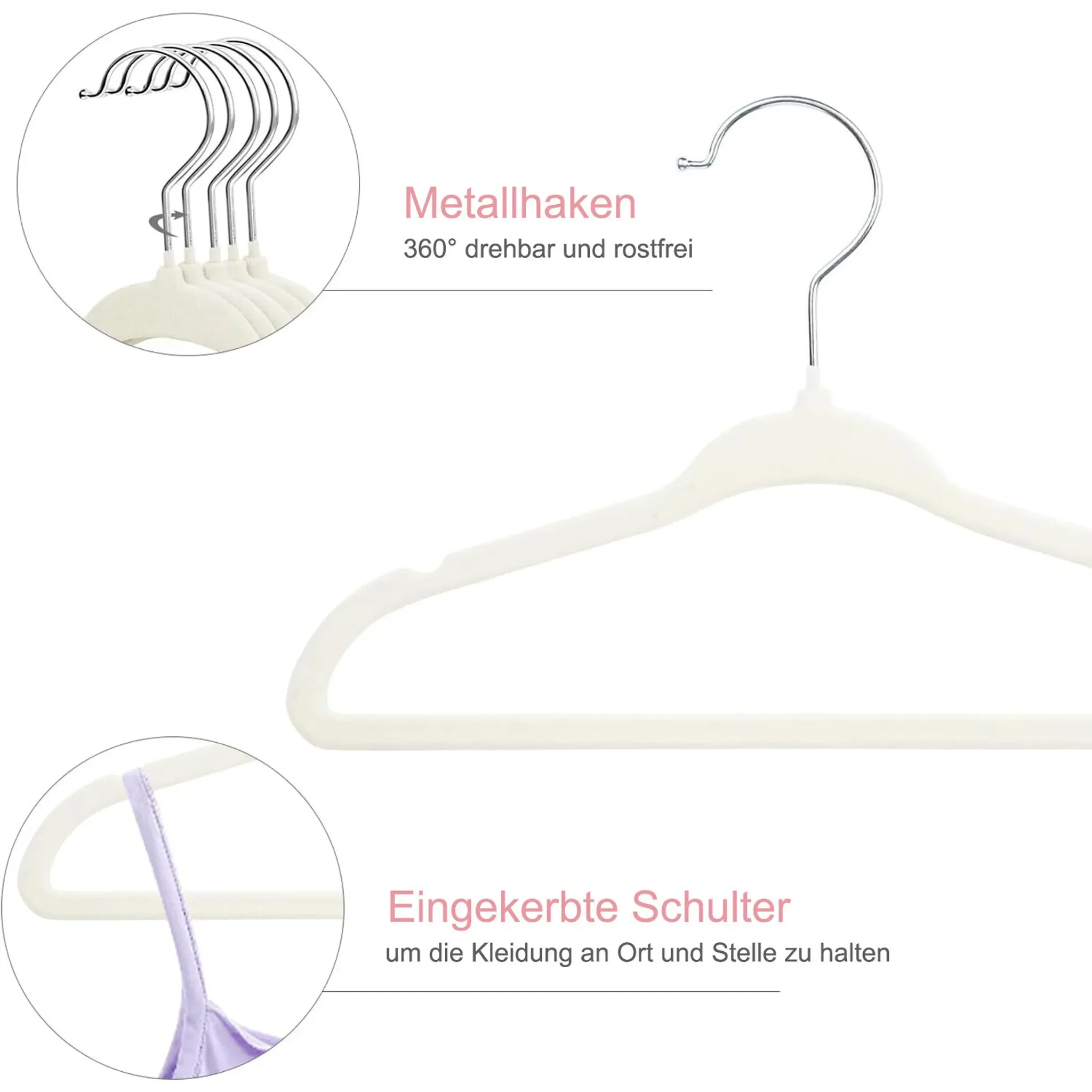 Highlights: Sichere Samtoberfläche für empfindliche Stoffe, ultradünnes Design für maximalen Stauraum, formstabile Schulterkontur, ideal für Kinderzimmer, Kleiderschränke und Reisen.