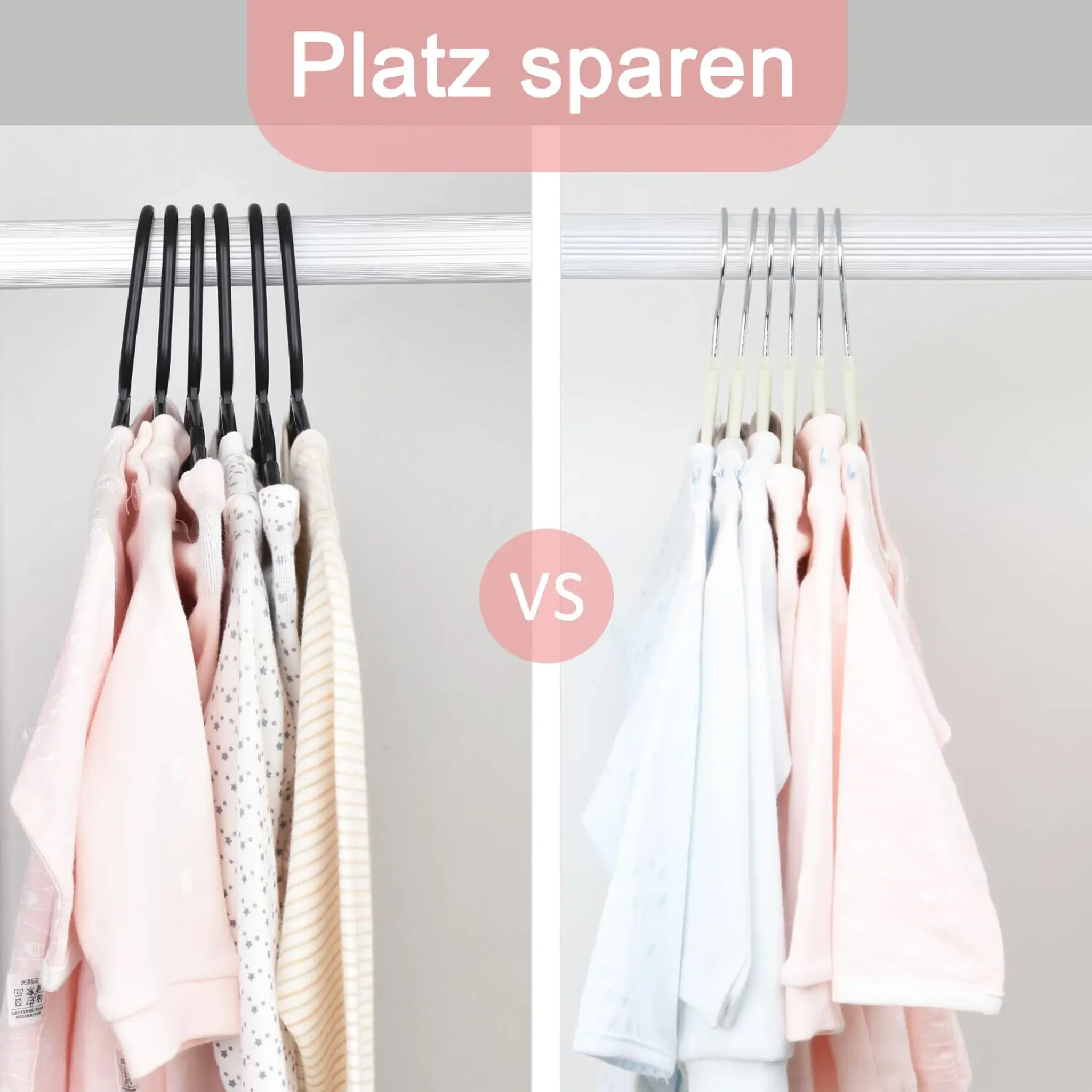 Das ultradünne, platzsparende Profil schafft zusätzlichen Stauraum im Kinderzimmer oder Kleiderschrank. Durch die ergonomisch geformten Schultern behalten Kleidungsstücke ihre Form, ohne unschöne Verformungen. Perfekt für eine übersichtliche, ordentliche und stilvolle Aufbewahrung.