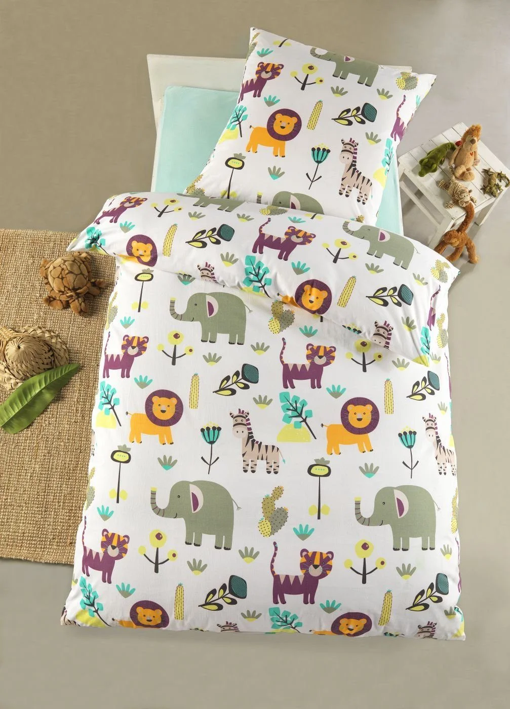 Produktinformationen "Kinderbettwäsche-Set „Safari“ – Mikrofaser, 135×200 cm + 80×80 cm, mit Reißverschluss"