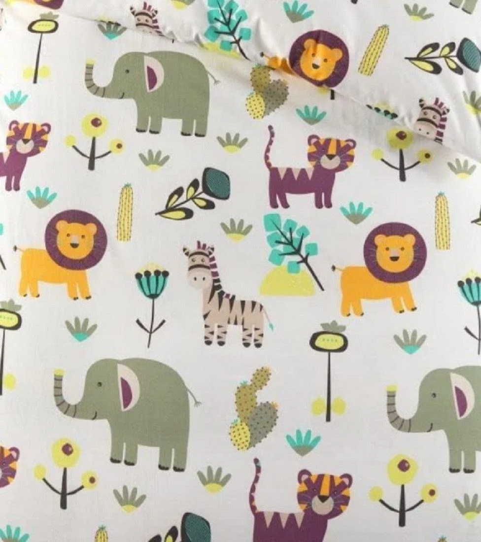 Dieses farbenfrohe Safari-Bettwäsche-Set von Optidream sorgt für ein gemütliches Schlafgefühl und macht das Kinderzimmer zu einer kleinen Abenteuerwelt. Mit Löwe, Elefant, Giraffe und weiteren Tieren lädt das Design Jungen und Mädchen gleichermaßen zum Träumen ein. Die feine Mikrofaser aus 100 % Polyester ist besonders weich, hautfreundlich und temperaturausgleichend – ideal für einen erholsamen Schlaf das ganze Jahr über.