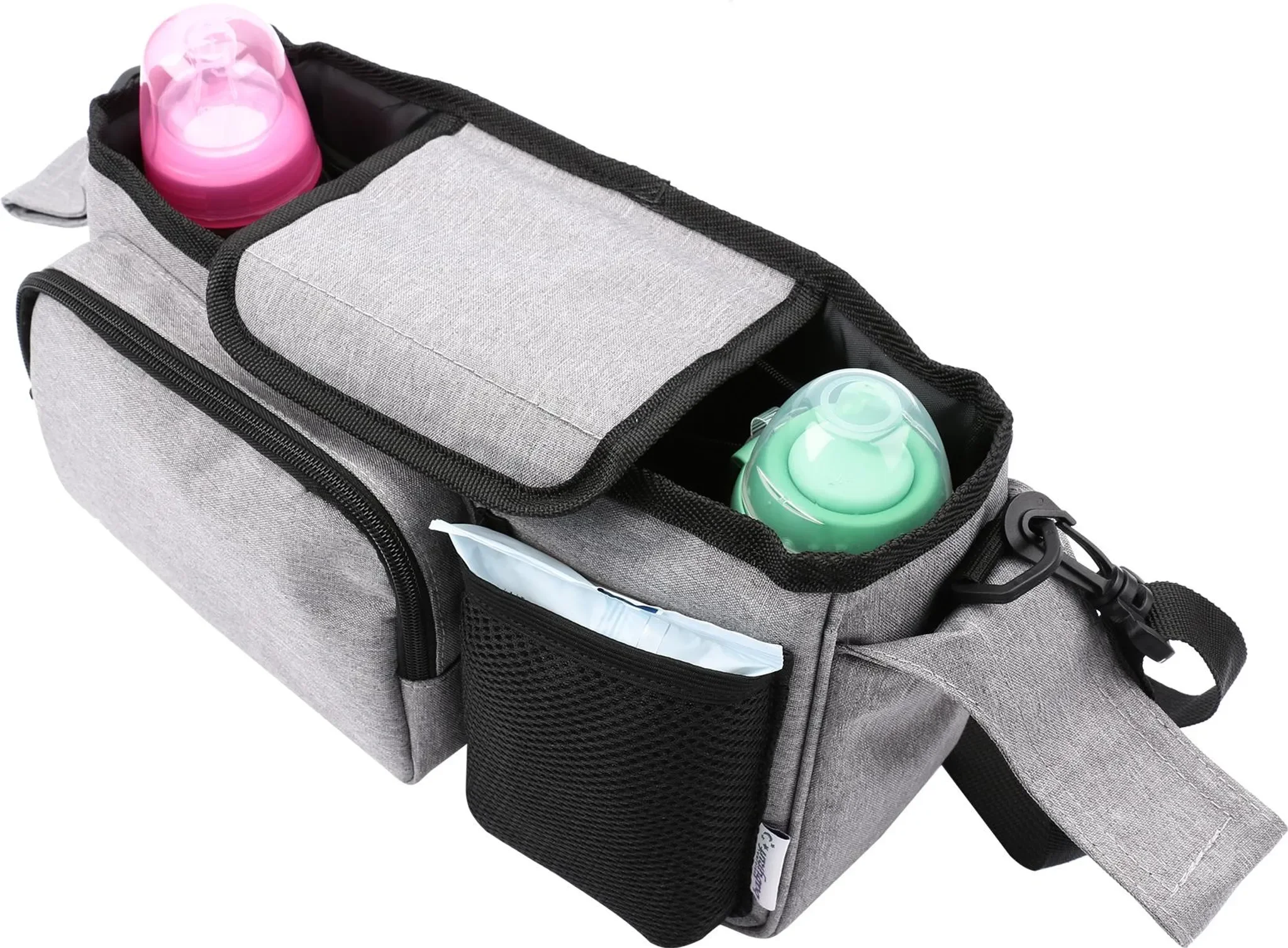 Olympia BO200 Buggy Organizer – Grey | Universale Kinderwagen-Tasche | Wasserabweisend & mit Flaschenhaltern