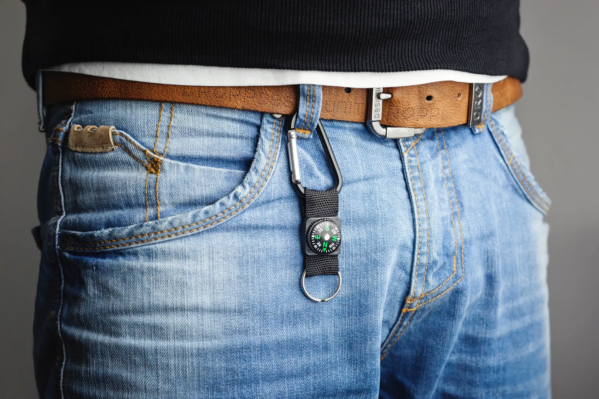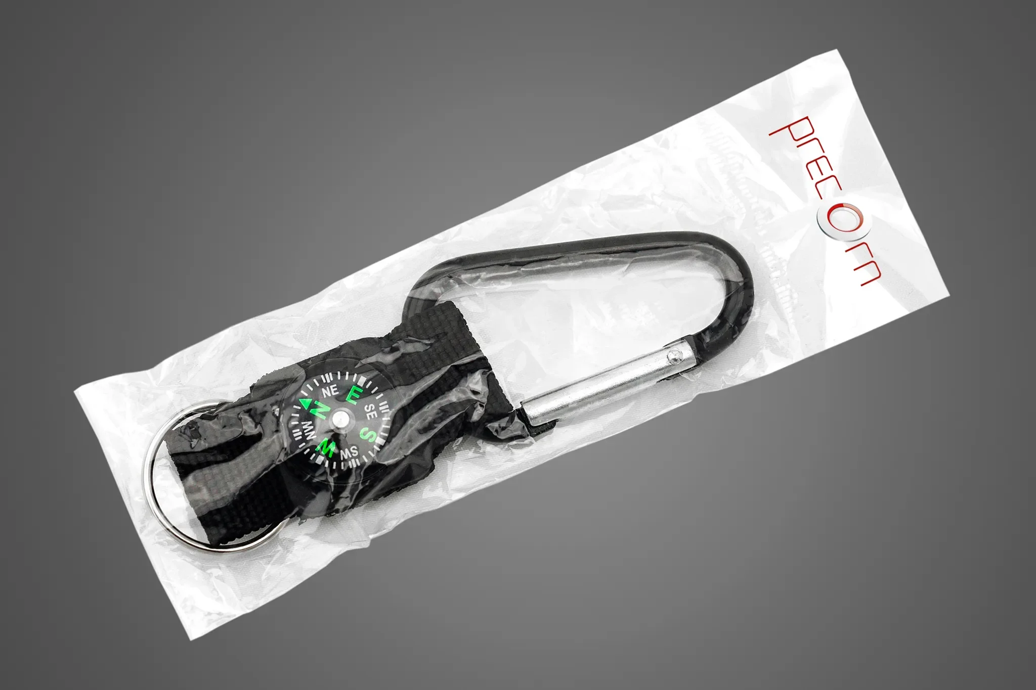 Schlüsselanhänger mit Karabiner & Kompass – Outdoor-Anhänger für Camping & Alltag