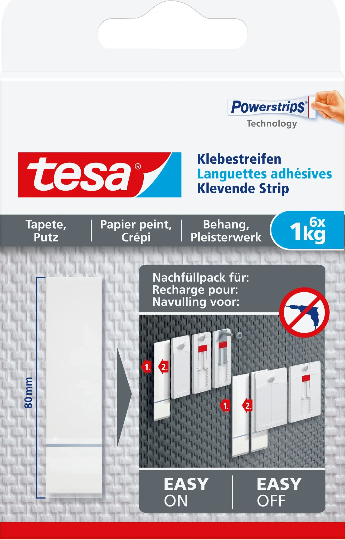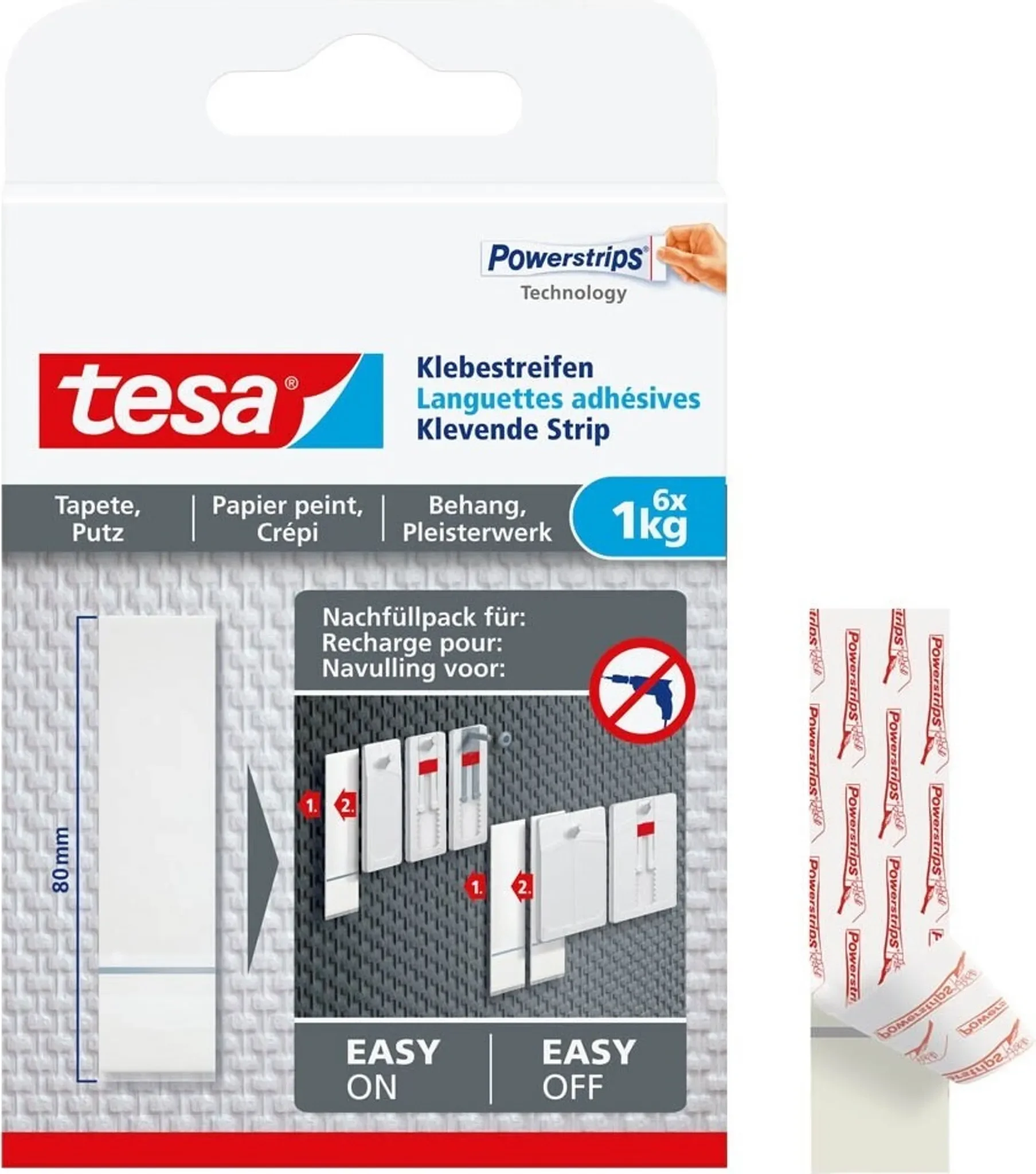 | Im Paket | 6 × tesa Powerstrips® Klebestreifen für Tapete & Putz |