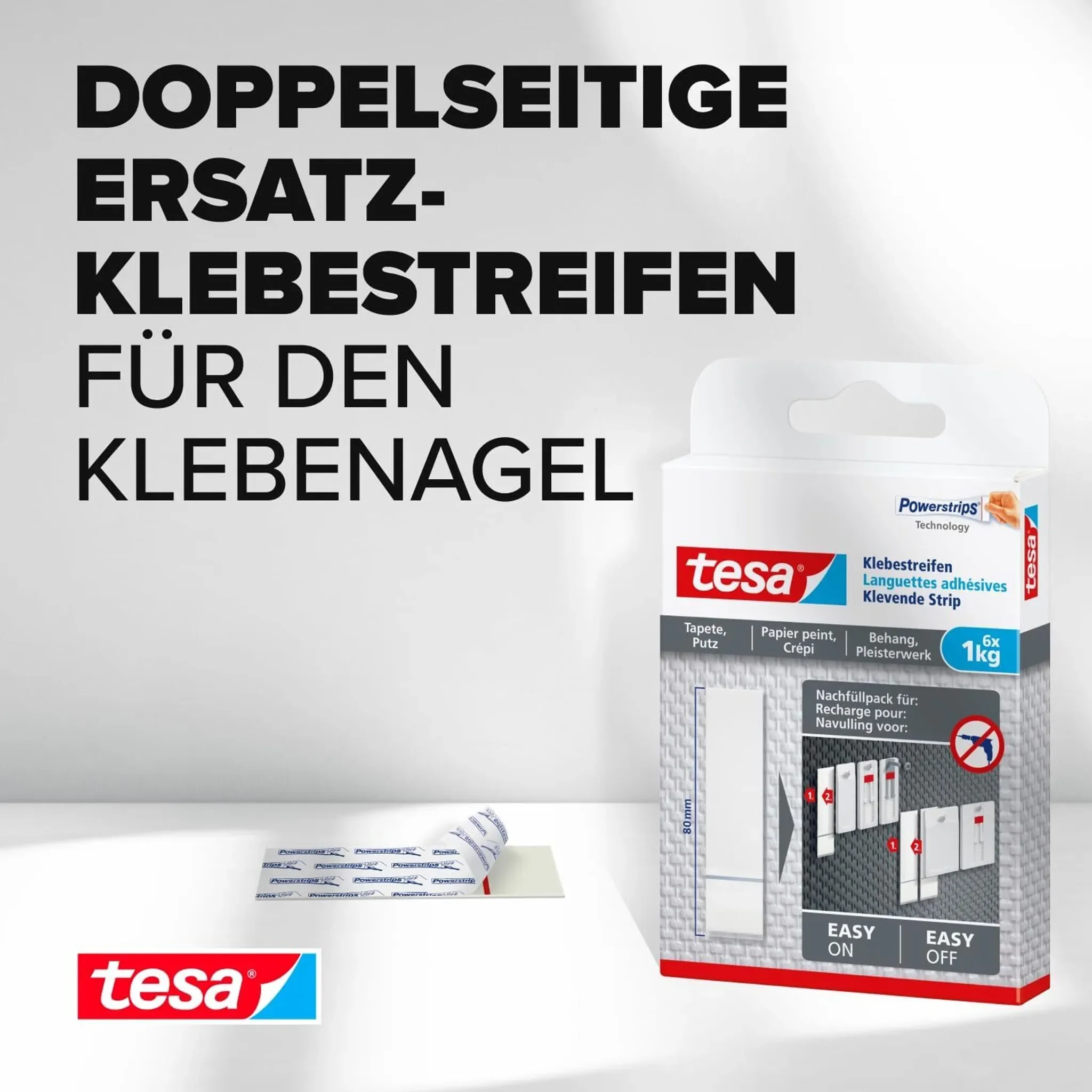 Die tesa Powerstrips® Klebestreifen ermöglichen eine schnelle und saubere Befestigung leichter Gegenstände auf empfindlichen Oberflächen wie Tapeten oder Putz. Dank der starken Klebeleistung lassen sich Dekorationen, Fotos oder Karten sicher anbringen – ganz ohne Bohren, Nägel oder Schrauben.
